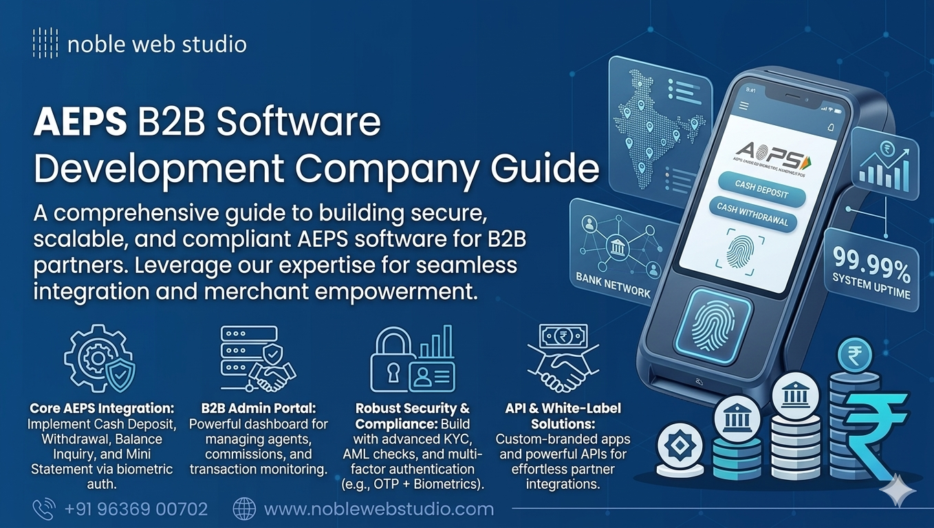 This blog will guide you through choosing a trusted AePS B2B software development company is crucial for business growth and financial inclusion, and how Noble Web Studio empowers companies to scale efficiently in the digital banking ecosystem.